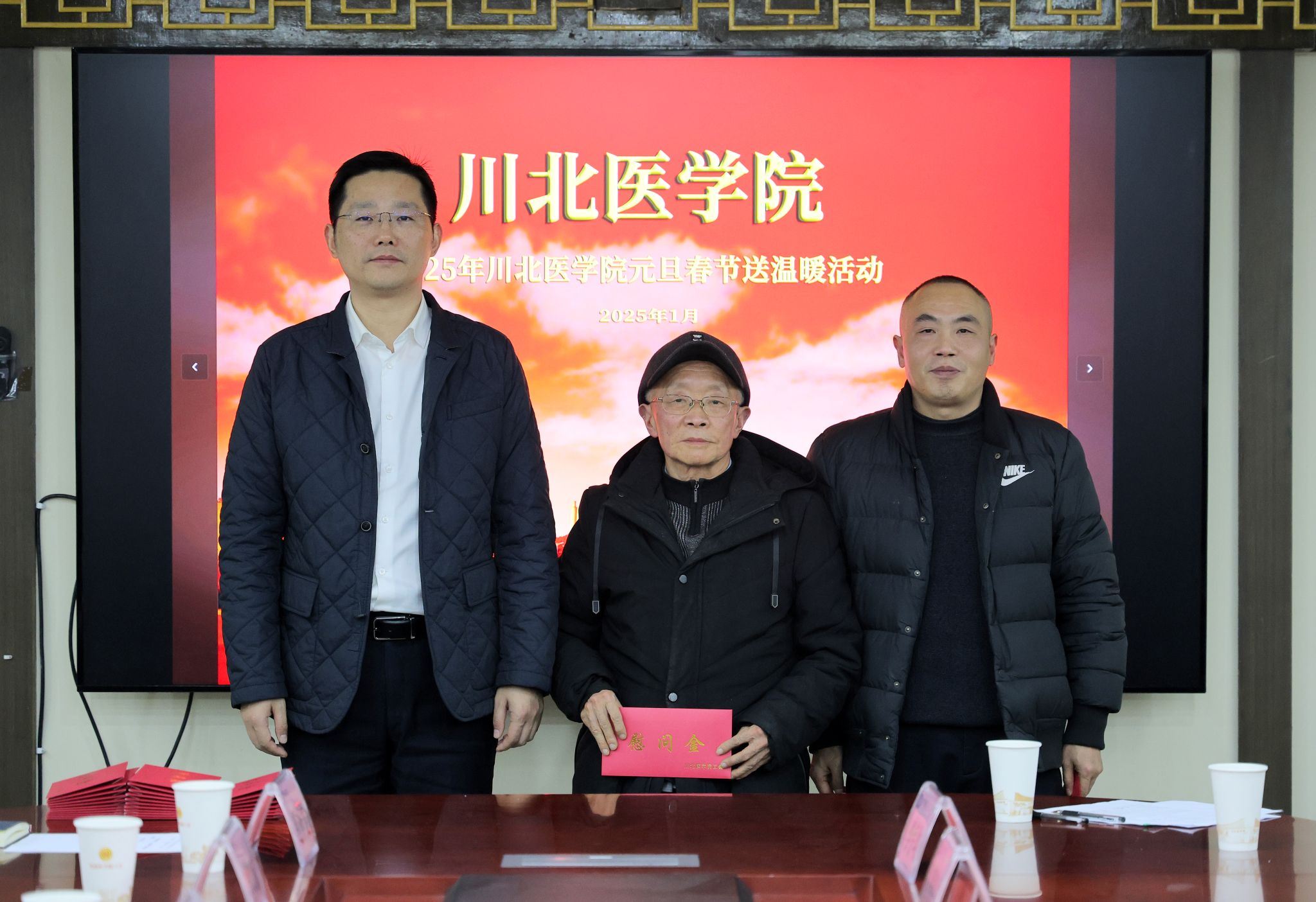 慰问活动中,学校领导向大家致以诚挚的慰问和美好的节日祝福。辞旧迎新之际,学校发布了2025年元旦新年贺词以及川北医学院2024年度十件大事,过去一年成绩斐然,各项成绩的取得都凝聚着川北医人辛勤的汗水和无私的奉献,为奋进的全体川北医人点赞,向在座的老师们、同志们表示敬意。