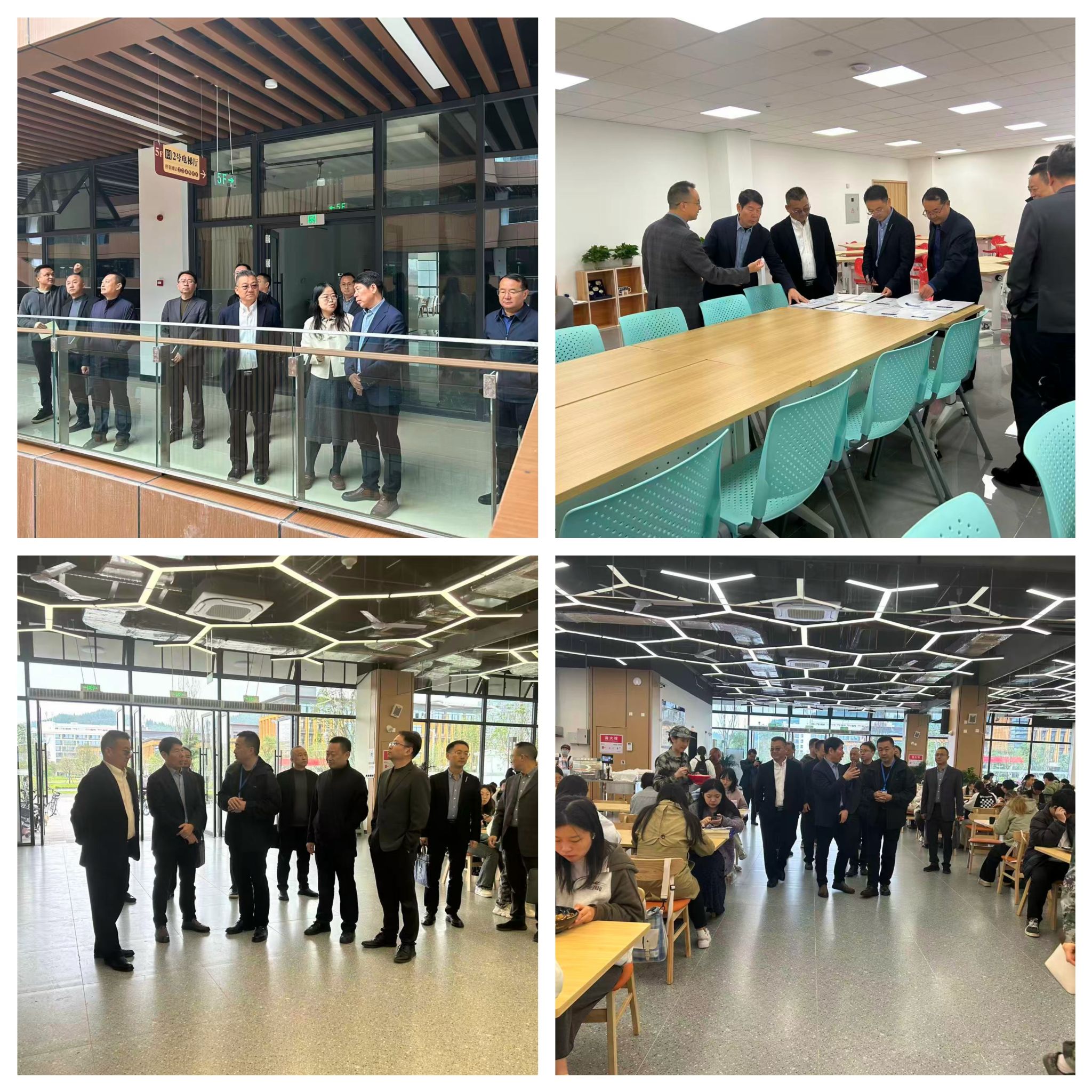 交流会结束后,一行人在图情信息中心(弘医楼)观光走廊全景参观了临江校区,考察调研了瑞园食堂、瑞园学生公寓,详细了解了我校“一站式”学生社区建设规划情况和学生公寓管理服务状况。