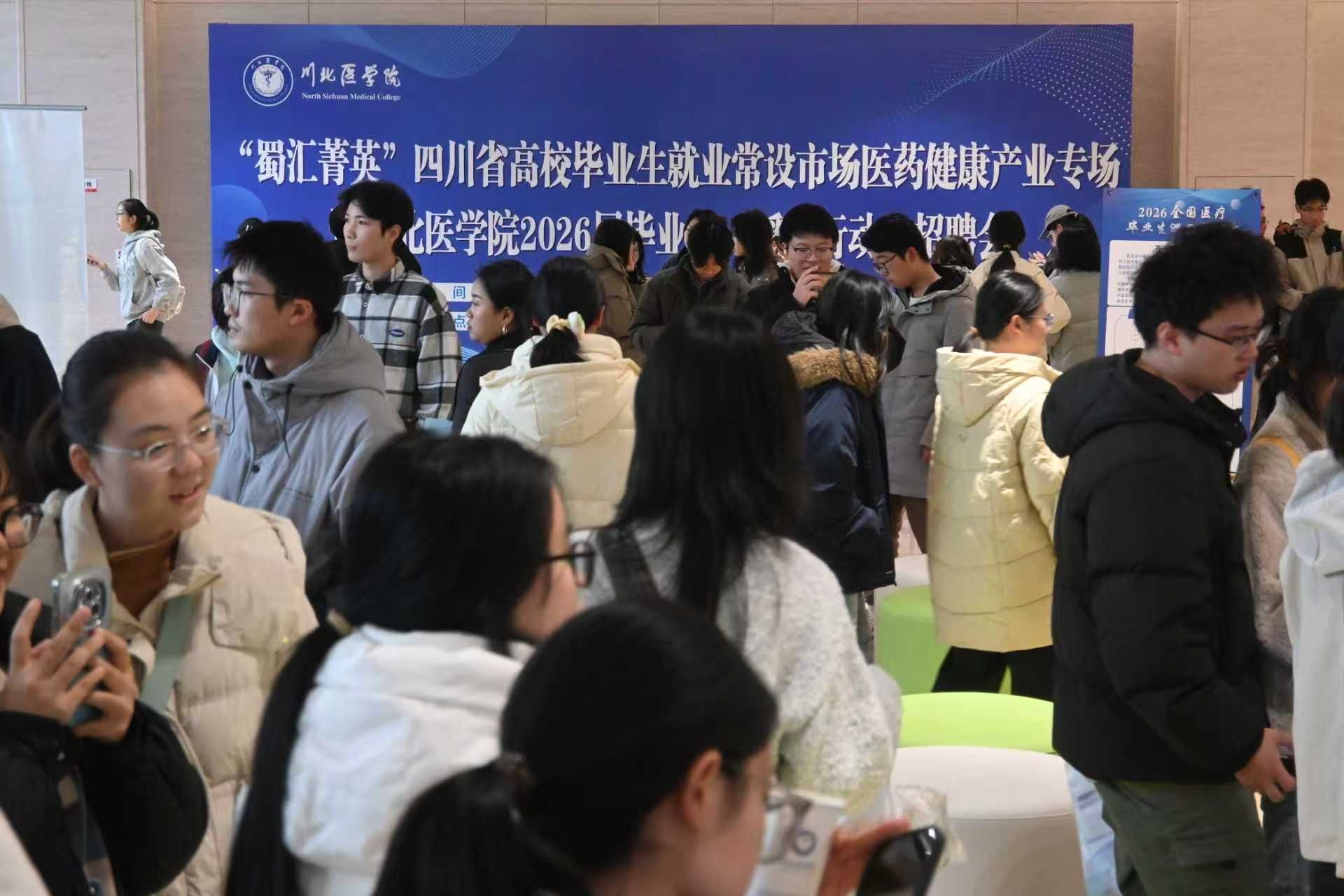 12月21日,“蜀汇菁英”四川省高校毕业生就业常设市场医药健康产业专场暨川北医学院2026届毕业生“暖冬行动”现场招聘会,在我校临江校区世纪礼堂成功举行。