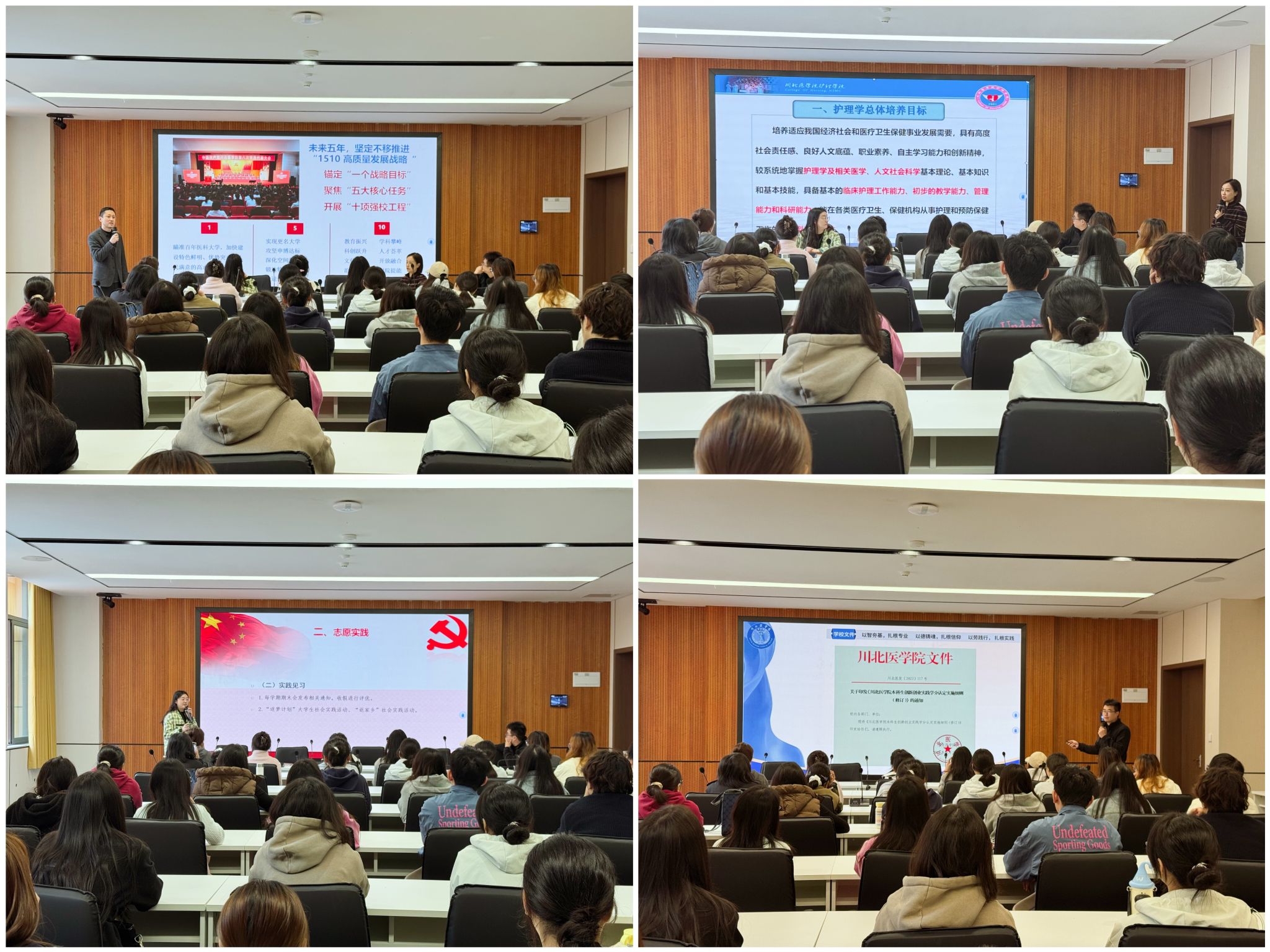 护理学院教务科副科长赵芹从培养方案、学籍管理、学士学位授予等方面,向同学们详细介绍了护理学和助产学两个专业在教学管理方面的相关规定,并就学分要求、选课注意事项等学生普遍关心的问题进行了细致说明,帮助大家全面了解本科阶段的学业要求。