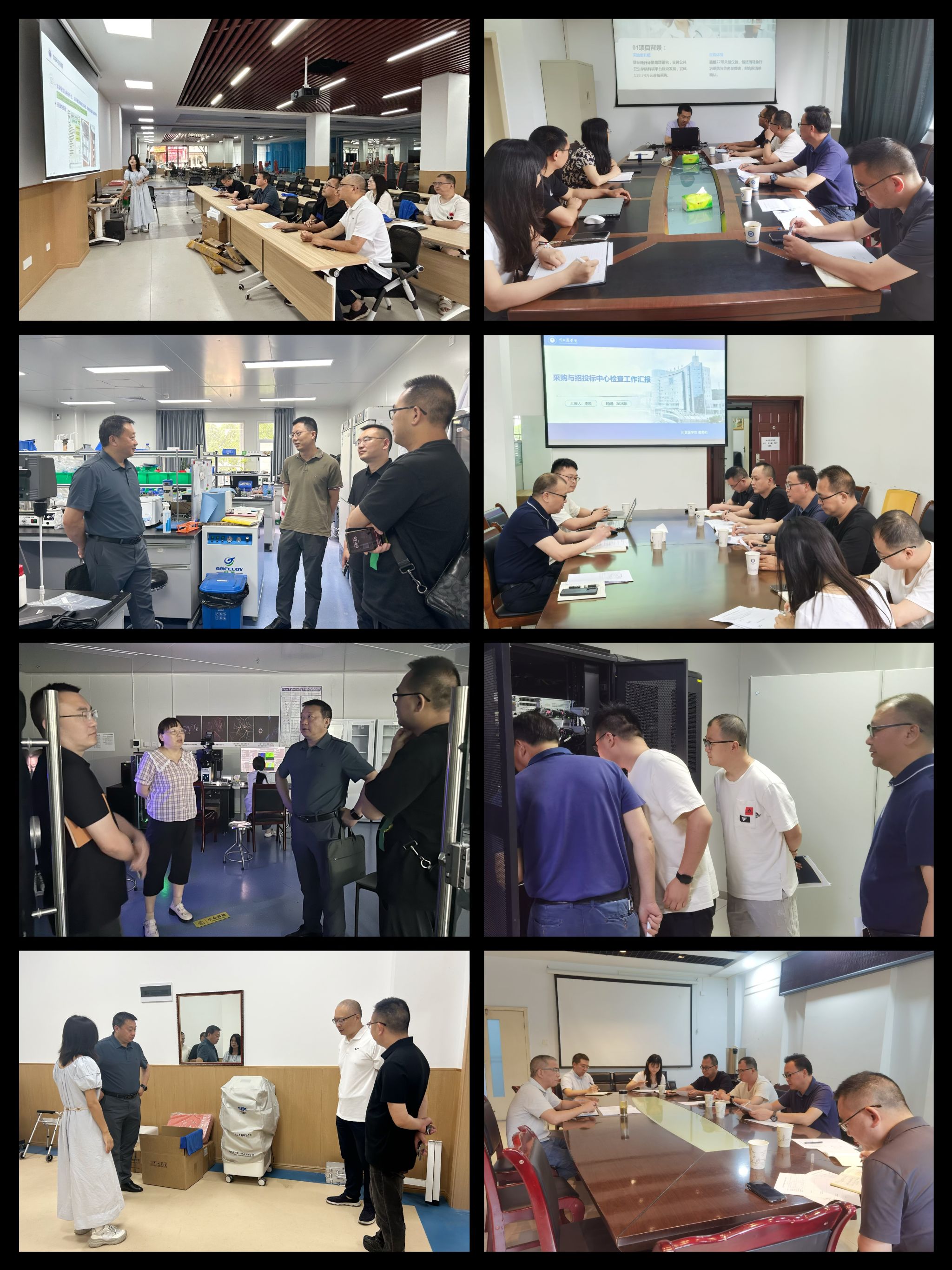 本次“回头看”工作以目标与结果为导向,聚焦2024年度部分重点政府采购项目建设运行情况,采取听取情况介绍和实地走访交流的方式深入基础医学与法医学院、公共卫生学院、教务处、运动医学与康复学院·体育部、影像研究所五个院系部门开展考察交流。项目负责部门围绕项目建设、运行情况及存在问题进行了详细通报;工作组广泛收集各院系部门在项目立项、论证、需求编制、招标流程和履约验收等环节的意见与建议。