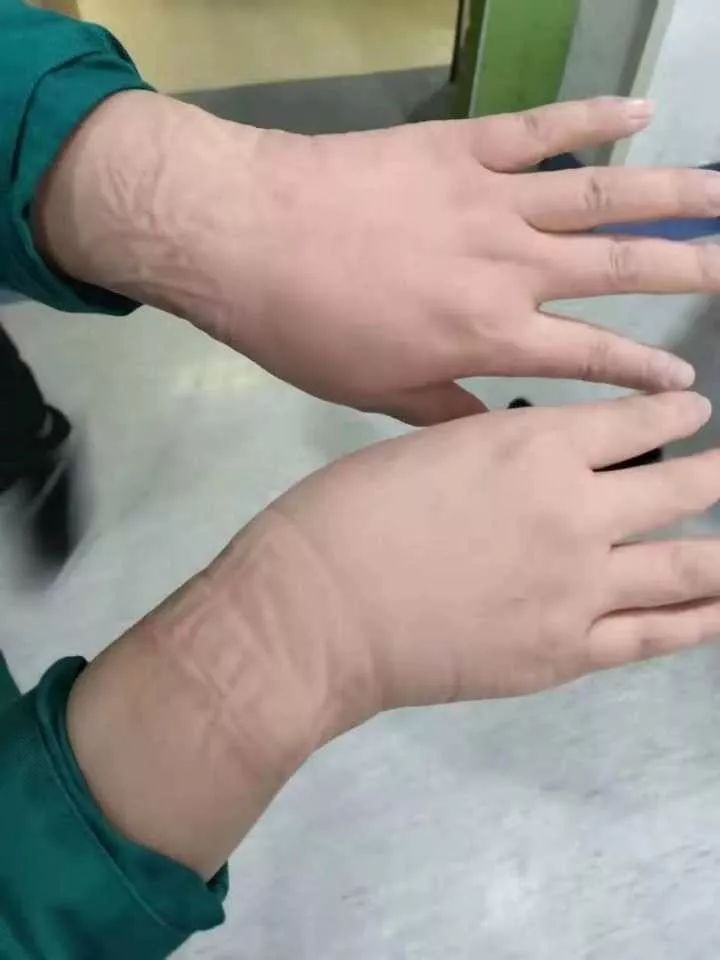 据李华介绍,从1月27日开始,川北医学院附属医院援助湖北医疗队全体成员就正式在武汉市红十字会医院正式开展医疗援助。“按照原计划,川北医学院附属医院援助湖北医疗队护理人员负责30张病床的医护工作,但鉴于湖北确诊及疑似病人的增加,医疗队将负责的病床数量增加到工作极限,调整到了90张。”李华说,每次进入病房前,医疗队全体成员都会在5楼清洁区穿戴好隔离防护衣物,这项工作必须一丝不苟。在工作中,大家则坚持控制饮水,以尽量避免在一个工作时间段上厕所。