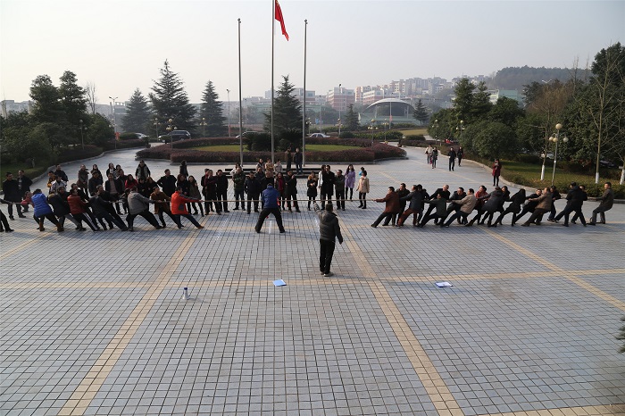 12月19日下午,由机关一分工会组织举办的“迎新春,庆元旦”教职工拔河比赛在高坪校区行政楼广场举行,办公室职工参加了比赛。