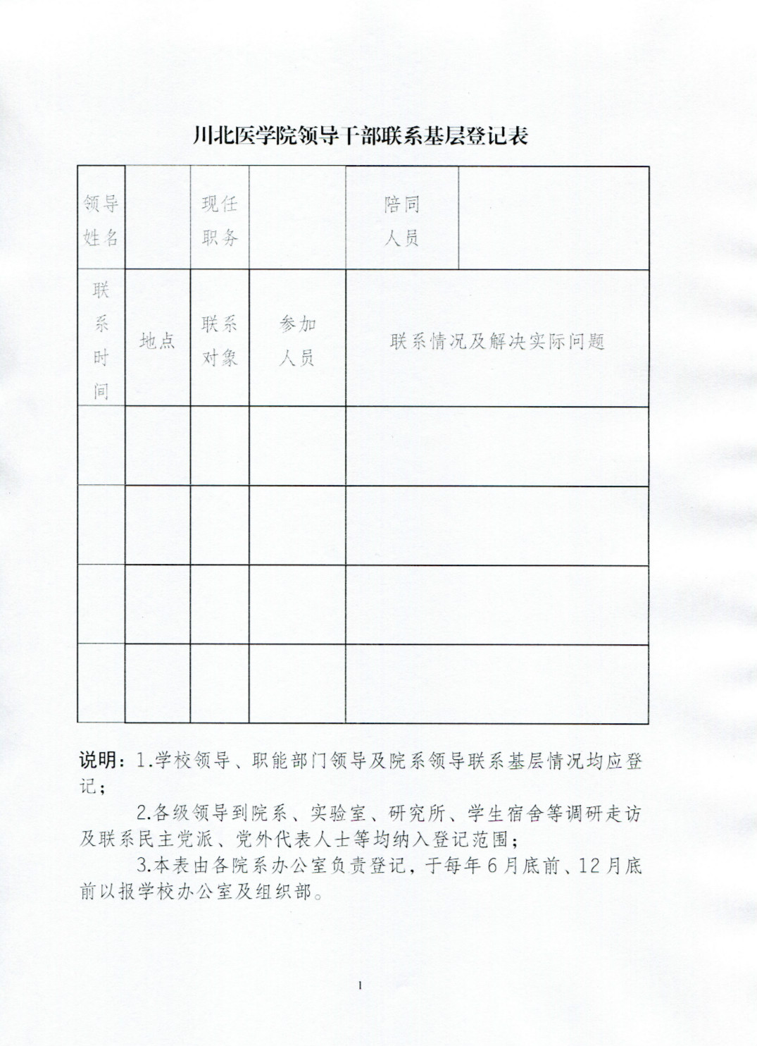 川北医学院领导干部联系基层登记表