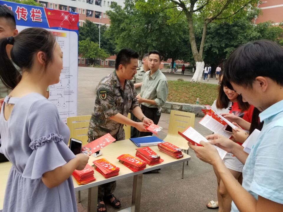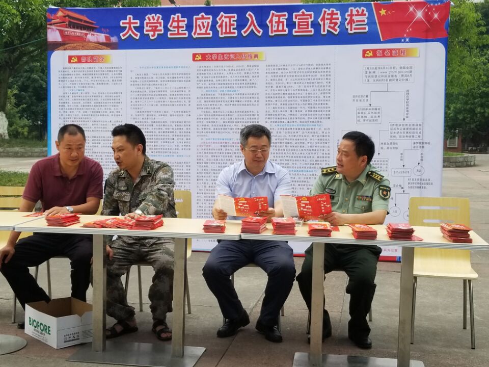 为帮助大学生了解、掌握应征入伍相关政策和流程,鼓励学生积极应征入伍,献身国防事业,6月2日上午,学校武装部与高坪区武装部在我校高坪校区太阳城联合举行了2017年大学生征兵宣传活动,武装部部长顾东辉一行为学生们进行了现场宣讲。学院副院长罗加福到宣传现场指导工作。