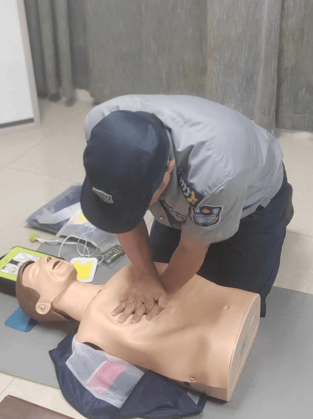 此次培训班采取理论知识讲解与救护技能实操训练相结合的形式。培训老师就救护概论、心肺复苏、自动体外除颤器(AED)使用方法、气道异物梗阻急救法、创伤救护等相关知识进行了细致讲解,并现场示范和讲解了应急救护的流程、基本技巧、操作步骤。培训中,学员们认真投入、学习热情高,老师耐心指导纠正学员的动作,与学员积极互动。通过认真学习和实践,安保人员熟练掌握了急救知识技能。