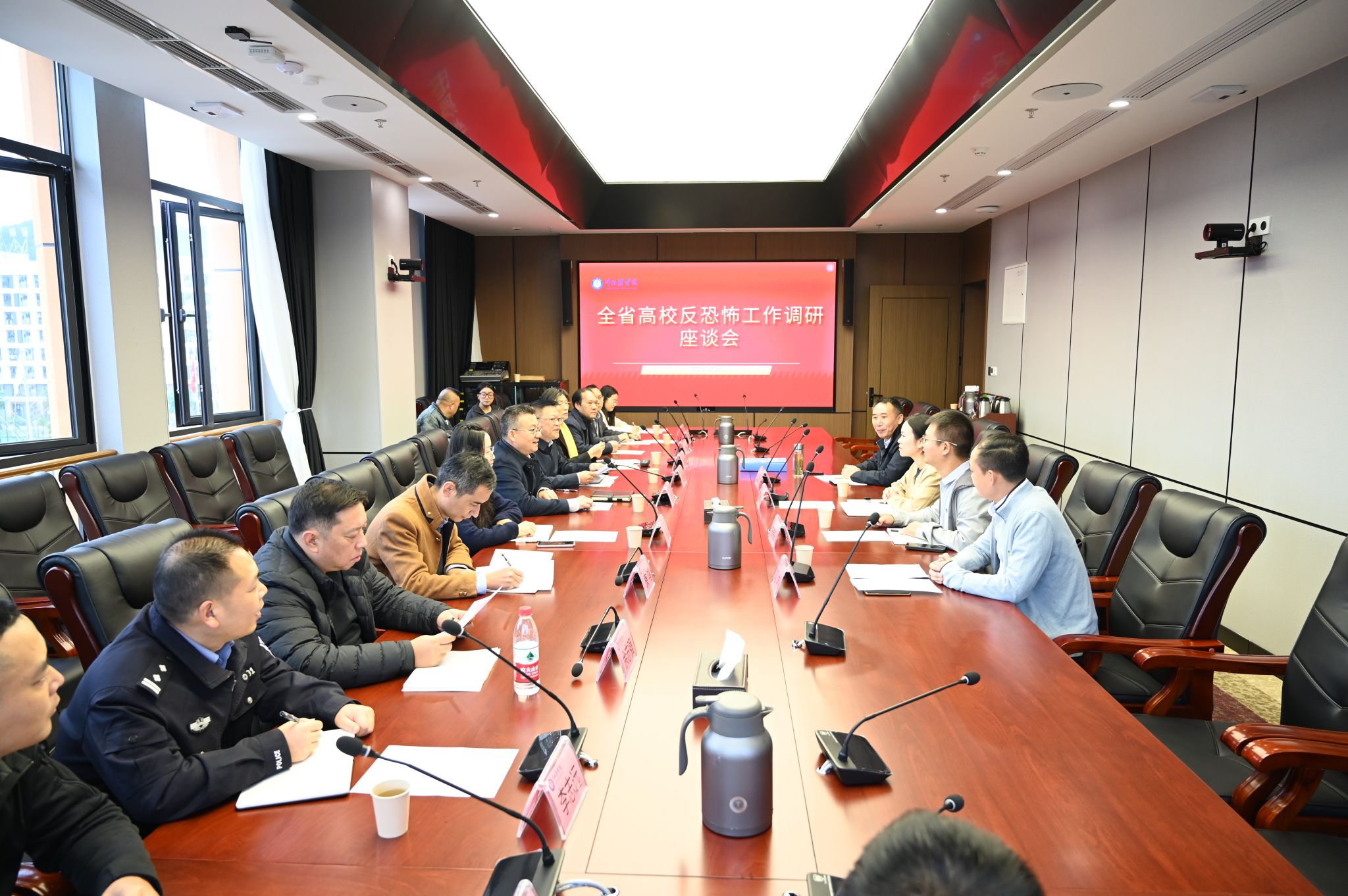 为进一步强化高校反恐防恐体系建设,10 月 31 日上午,省教育厅、省公安厅相关人员组成的全省高校反恐怖工作调研组到我校开展反恐怖工作调研座谈会。学校党委常委、副校长何永斌参加并主持会议,宣传部、保卫部(处)、学生工作部、国教院、后勤管理处,市、区公安反恐和政保等部门负责人参加调研。