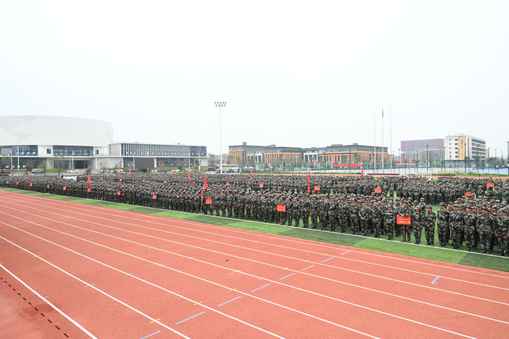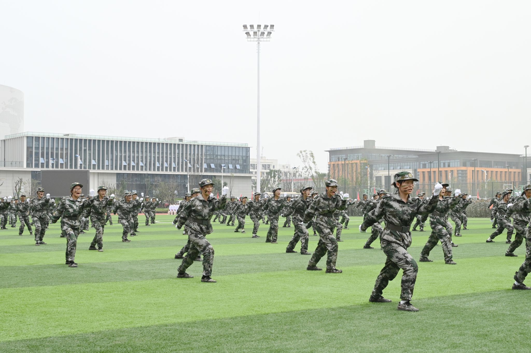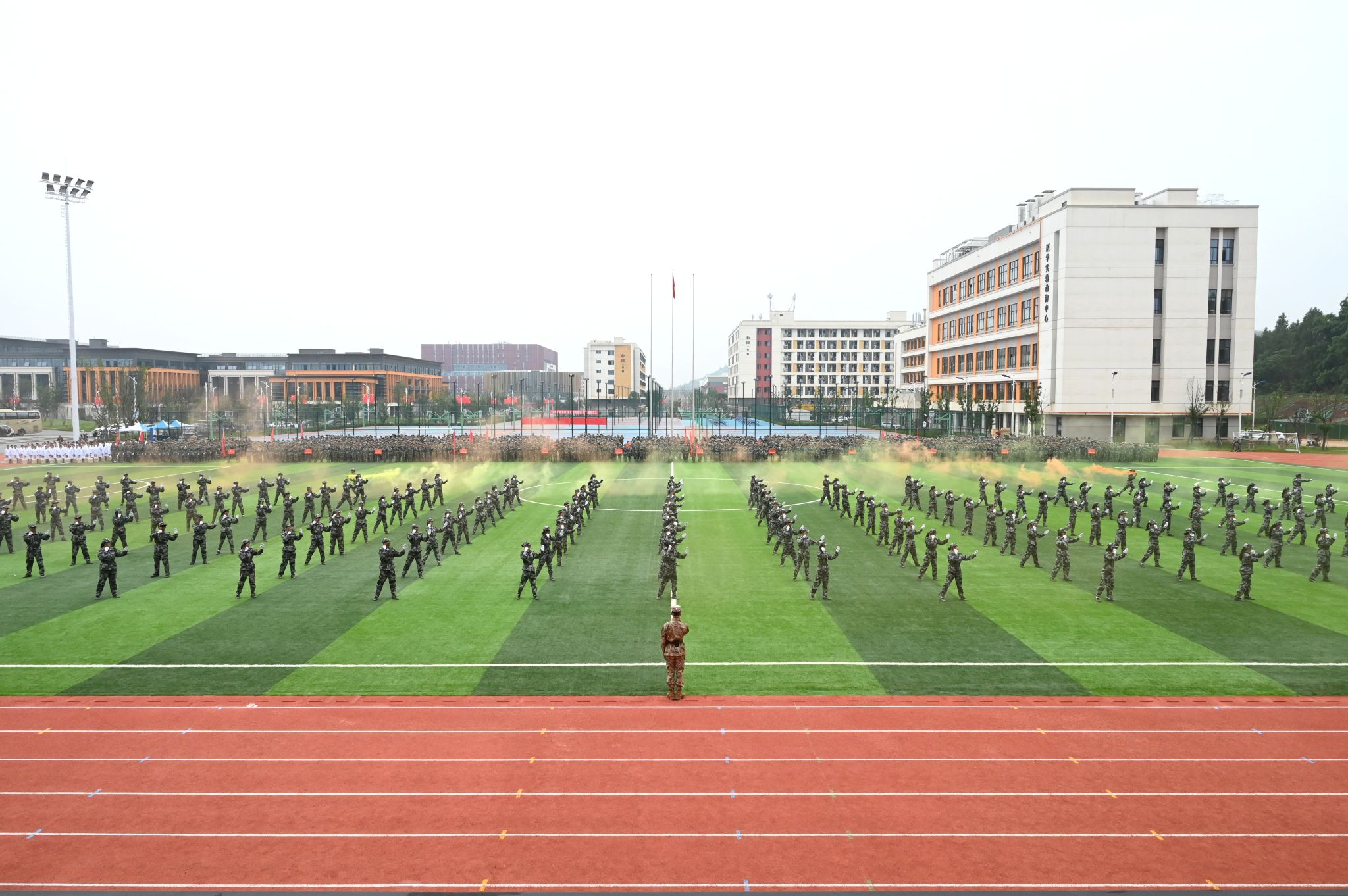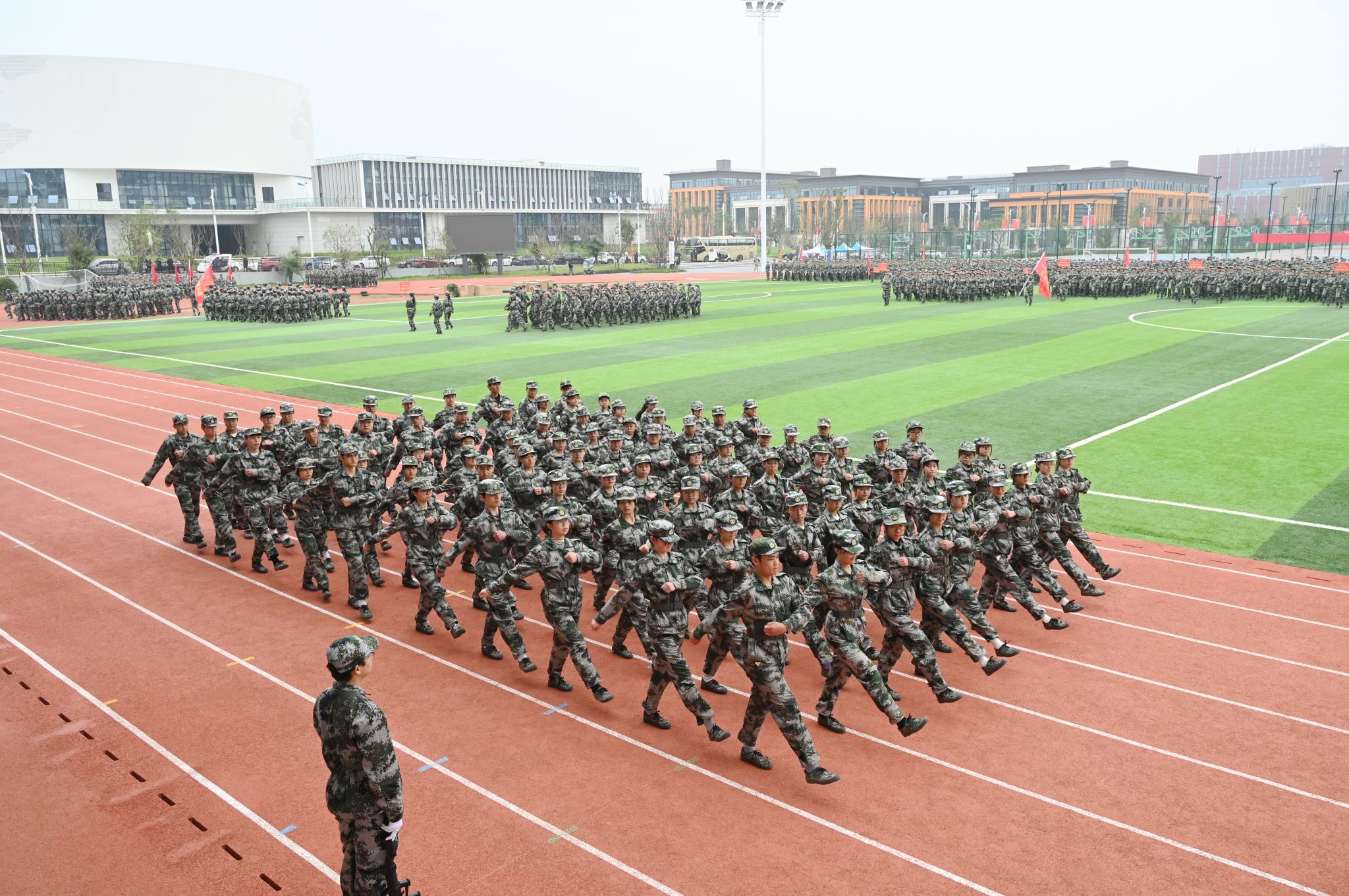 在军训成果汇报展示中,由2025级新生组成的36支方队依次经过主席台,他们步履铿锵、目光坚毅,嘹亮的口号声此起彼伏、响彻云霄,不仅展现了军训的丰硕成果,更抒发了学子们炽热的爱国情怀和坚定的报国之志。