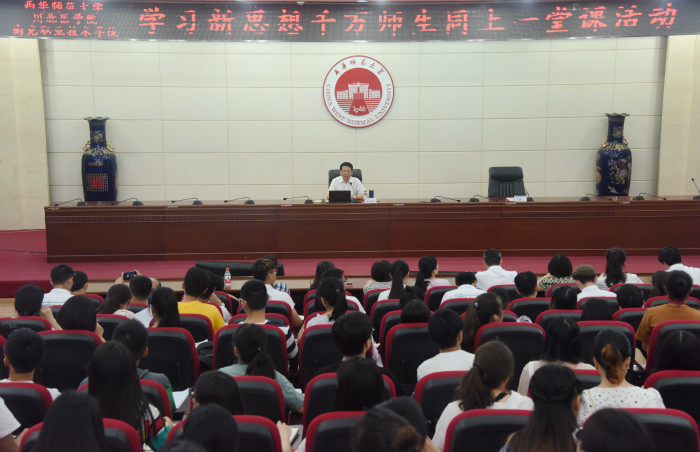 为深入学习贯彻习近平总书记在北京大学师生座谈会和纪念马克思诞辰200周年大会上的重要讲话精神,6月21日下午,“全国高校‘学习新思想千万师生同上一堂课’(西华师范大学站)”宣讲活动在西华师范大学图书馆举行。我校教师代表和我校第一届“青马工程”大学生骨干班学员赴西华师范大学参加了此次宣讲活动。本次活动采用图书馆现场宣讲和网络同步直播两种方式开展,西华师范大学党委书记王安平担任主讲,现场400余名师生代表共同聆听了一堂特别的思政大课。我校医学影像学院、护理学院、预防医学系、后勤管理处等院系和职能部门也积极组织视频收看活动。