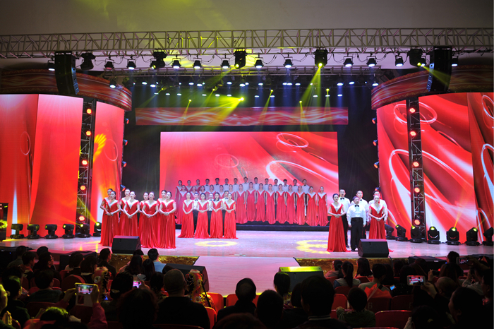 老师们和大学生艺术团的同学们分为四组同台献艺,用他们真诚的演唱,为党的十九大献礼。老中青三代川北医人逐一登台,表达了他们将“艰苦奋斗、自强不息”的川北医精神代代相传,为川北医的发展,携手共进的炙热情怀。