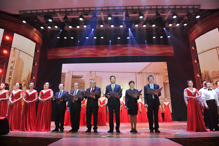 66年,不算太短,当年用来平整操场的石夯上,已积满了厚厚的苔藓;66年,不算太短,岁月已悄然流逝,而真正美丽的人生,在这里薪火相传;66年,不算太短,一代代的川北医人,用真诚和执着,去把这片贫瘠的土地,温暖……这支由学校领导班子成员组成的朗诵队伍惊艳全场,他们字里行间,真情流露,述说着对党和国家繁荣昌盛、对学校事业发展腾飞、对全校师生无限的爱与责任。