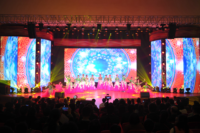 晚会在舞蹈《溢彩华彰》现代与古典交织的优美旋律中拉开帷幕,歌曲《从前慢》、藏族舞《再唱山歌给党听》、川剧表演《梨园神韵》、舞蹈《小鸡小鸡》、小品《365个祝福》……一个个精彩的节目让整场晚会歌舞欢腾,高潮迭起,笑声朗朗,让现场观众感受到了一场视听盛宴。