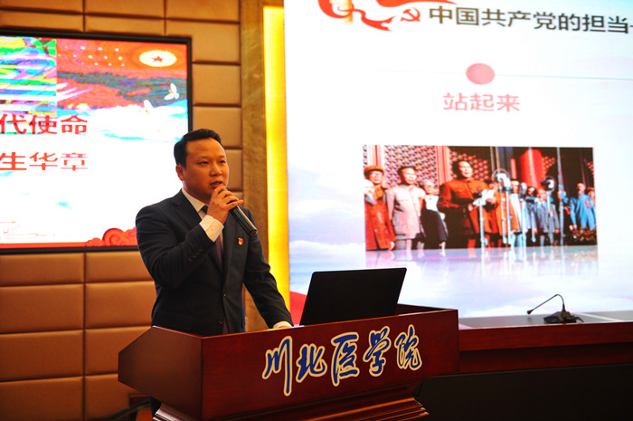 四川省优秀共产党员、第九届全国高校辅导员年度人物入围者,曾任我校精准扶贫驻村干部的我校辅导员熊翼老师作了题为《新时代,使命有力量、青春有担当》的宣讲报告。他结合自己长期奋战在驻村精准扶贫工作一线的经历与体会,对中国共产党让中国人民站起来、富起来、强起来的初心、使命和担当作了深刻诠释,他希望广大青年人要肩负新使命,兼程砥砺行,用实际行动来践行青年担当。