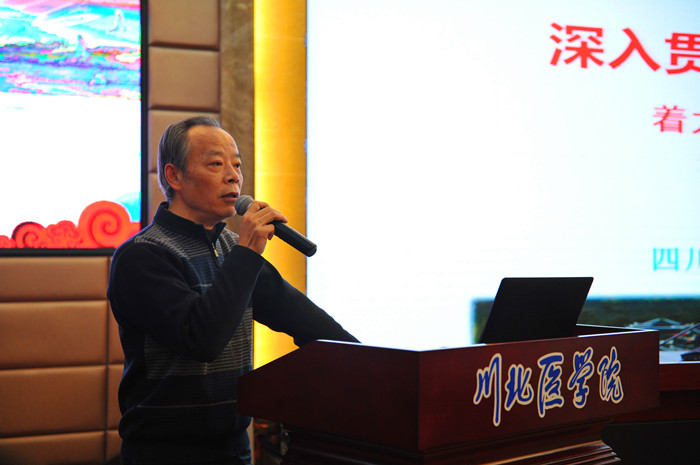 任四川大学华西临床医学院辅导员二十七年,摸索出一套学生安全网络体系并推广,在川大内成立了第一个以学院本科生为主体的学生心理健康协会的胡志坚老师以《深入贯彻学习党的十九大精神--着力构建学生“双创”良性生态》为题,系统阐述了党的十九大报告内容,他聚焦新时代的卫生与健康话题,详细解读了“健康中国”的概念,强调广大青年要紧跟时代步伐,坚持创新精神,勇担社会责任。