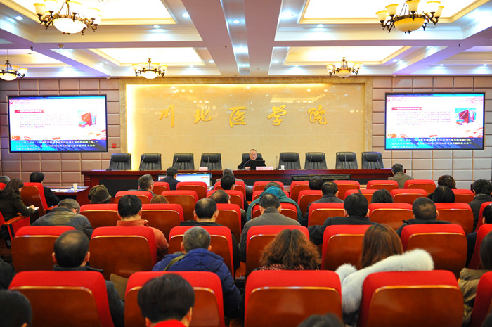 1月11日下午,学校党委在顺庆校区科技楼九楼学术厅召开中心组学习贯彻党的十九大精神第七次专题学习扩大会。学校院长杜勇以“发展川北医医学教育,服务健康中国”为主题,作了学习十九大精神主题报告。校党委中心组理论学习成员,附属医院党委、各党总支书记和直属党支部负责人,全校副处级以上领导干部,马克思主义学院教师,学工系统辅导员参加学习。
