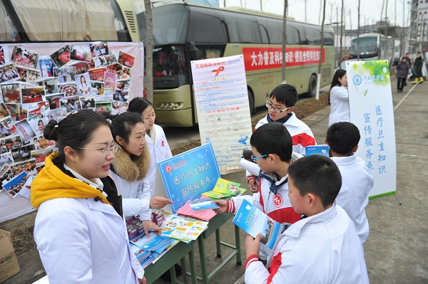 1月22日上午7时许,学校党委副书记、院长杜勇率党办、院办、宣传部、团委、研究生处党总支等部门相关负责同志,附属医院专家医疗服务队以及30名研究生、本科生志愿者在蒙蒙夜色中,冒着细雨、顶着严寒,奔赴我省2016年文化科技卫生“三下乡”——“汇聚脱贫攻坚新动能”集中示范服务活动现场——仪陇县新政镇初级中学开展医疗卫生志愿服务活动。