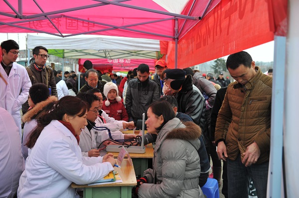 一到活动现场,杜勇立即指挥部署相关工作,全体人员迅速完成各项准备,投入到了紧张的工作中。首场集中示范服务活动现场人山人海、一片热闹喜庆的氛围,领春联、送年历、专家义诊、慰问演出等活动丰富多彩。在我校义诊服务点前,前来咨询问诊的患者和群众络绎不绝,附属医院风湿血液科、呼吸科、中医科、眼科、儿科等科室专家、教授现场坐诊,为群众义务进行疾病诊察、解难答疑,就群众咨询的常见病、慢性病预防措施和治疗提供专业的医疗建议,同时进行血压等常规项目的检查。