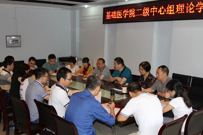 6月13日上午,基础医学院在机能中心会议室召开二级中心组理论学习扩大会。学校副院长雷军、基础医学院二级中心组成员、党总支委员、各支部书记、支委委员参加会议,会议由基础医学院党总支书记殷秀主持。