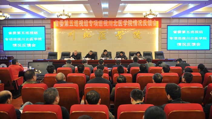 按照省委巡视工作领导小组的安排部署,省委第五巡视组于10月至11月对我校进行了专项巡视,同步开展了选人用人专项检查。12月23日上午,省委第五巡视组就专项巡视情况向学校进行反馈通报。省委第五巡视组组长向阳代表巡视组反馈巡视意见,并明确提出整改要求。巡视组副组长曾慧平、屈刚出席会议,学校党委书记李成军作表态发言,校党政领导班子全体成员、全校副处级以上干部参加会议,会议由学校党委副书记、院长杜勇主持。