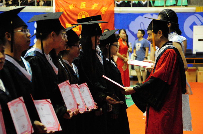 院长康健在毕业典礼上对2015届毕业生深情寄语。她代表学校向圆满完成学业的全体毕业生表示衷心的祝贺。她说道:“从今天开始,你们中的大多数人,自在驰骋于学海的生活即将告一段落,自力更生闯荡社会的生涯就此开始。外面的世界,海阔天空,希望你们能意气风发地走出川北医的校门;外面的世界,大浪淘沙,希望你们能信心百倍地走出川北医的校门;外面的世界,风雨兼程,希望你们能从容不迫地走出川北医的校门。”