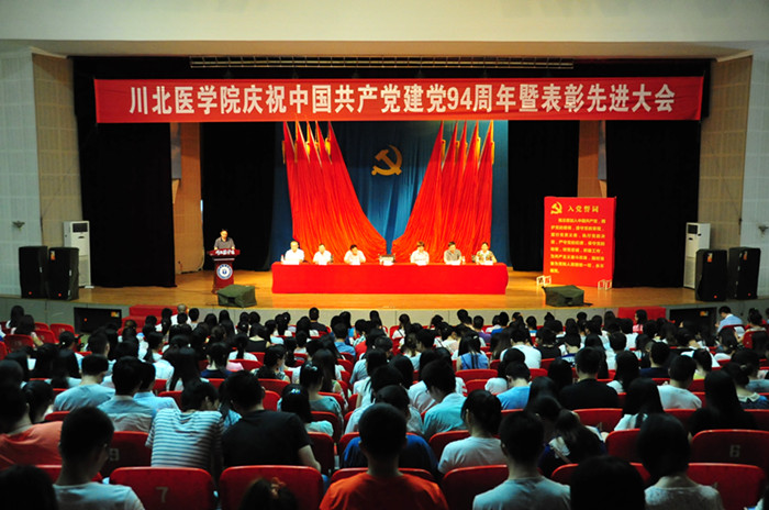大会在庄严的国歌声中拉开帷幕。在学校党委副书记、院长康健的监誓下,学校党委常委、副院长张小明带领全体新党员面对党旗、党徽,进行庄严宣誓。会上,学校党委常委、副院长雷军宣读了《关于表彰第十二届“百名优秀学生党员”的决定》和《中共川北医学院委员会关于表彰先进集体和优秀个人的决定》。在颁奖进行曲乐声中,主席台就坐的领导分别为获奖集体和个人颁奖。新党员代表、先进基层党组织代表和优秀共产党员代表先后作了发言。