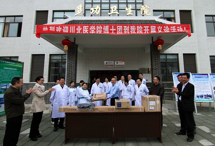 4月19日,学校党委副书记杜勇率领党委办公室、行政办公室、国有资产管理处、学生处、团委等相关部门负责同志以及由附属医院10名医学博士组成的专家服务团赴雅安“4·20”地震灾区天全县多功乡开展对口援建工作,为当地群众提供医疗诊疗服务,并向多功乡卫生院捐赠了一批设备器材,为该院进一步改善医疗、办公条件。
