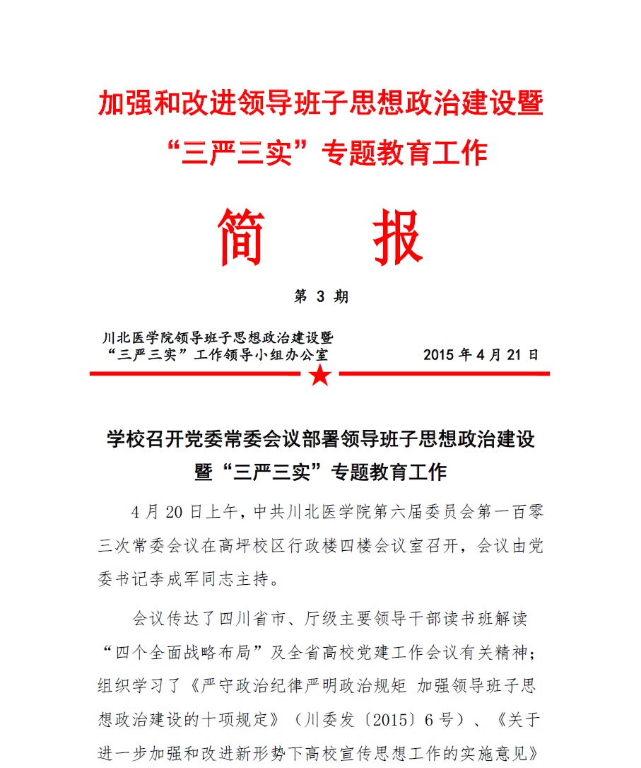 加强和改进领导班子思想政治建设暨“三严三实”专题教育工作简报(第3期)