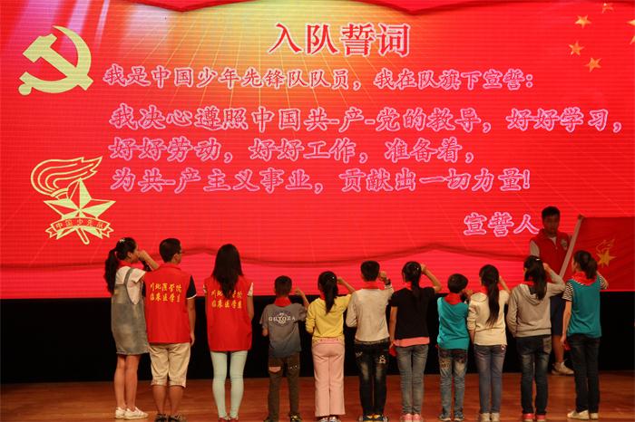 晚会中,外国语言文化系的留学生与公关礼仪部带来的公益T恤衫T台秀嗨翻全场,舞蹈《飘舞的红丝带》让我们相信“艾”与被爱,没有障碍。特校儿童带来的舞蹈《最美女孩》催人泪下,他们用优美的舞姿让我们坚信即使身体缺陷但他们就是今晚最美的女孩。一场特别的少先队员入队仪式,飘扬的红领巾,庄严的宣誓词,明德小学8名同学成为了正式的少先队员。
