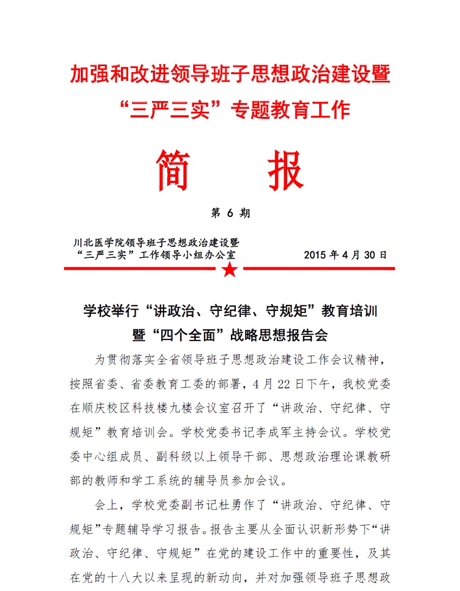 加强和改进领导班子思想政治建设暨“三严三实”专题教育工作简报(第6期)