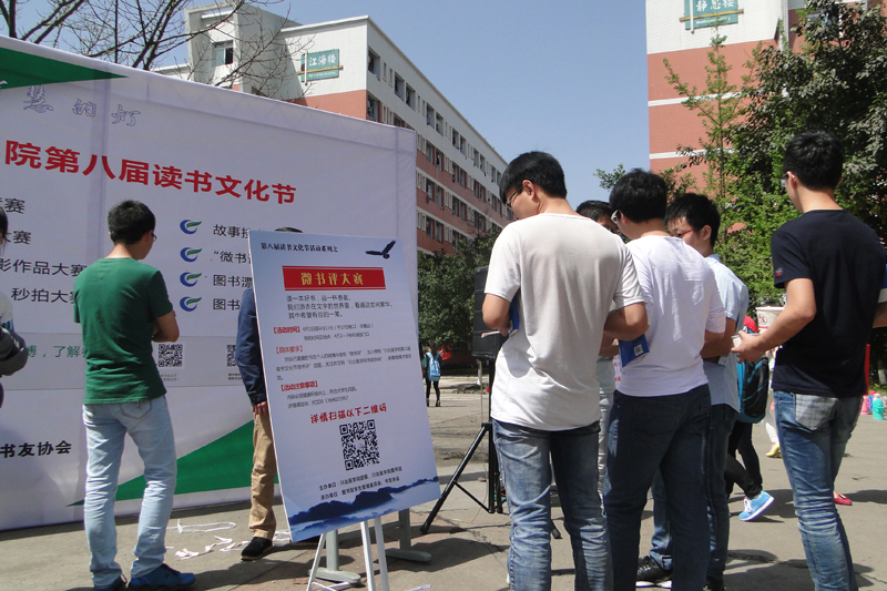 为相应全民阅读号召,营造校园阅读氛围,培养大学生阅读意识,激发阅读兴趣,促进学生通过阅读丰富内涵,提高文化素养和综合素质,规范阅读行为,促进校园文化建设,建设书香校园,院团委和图书馆主办,图书馆学生管理委员会和书友协会承办以“阅读--点燃智慧的灯”为主题的第八届读书文化节,共设立了阅读百科知识竞赛、图书馆logo设计、秒拍大赛、故事接龙、微书评等8项学生活动。