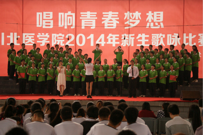 为庆祝建国65周年,营造健康高雅的校园文化环境,由学生处、校团委共同举办的“唱响青春梦想”--我校2014级新生歌咏比赛9月27日下午在高坪校区风雨操场隆重举行。2014级全体新生到场观看了比赛。
