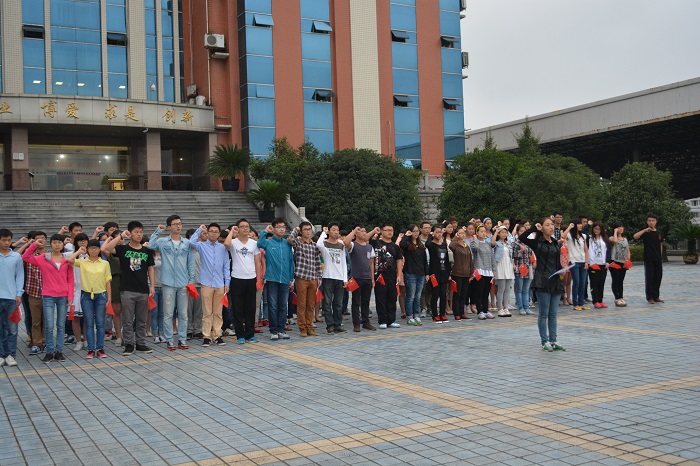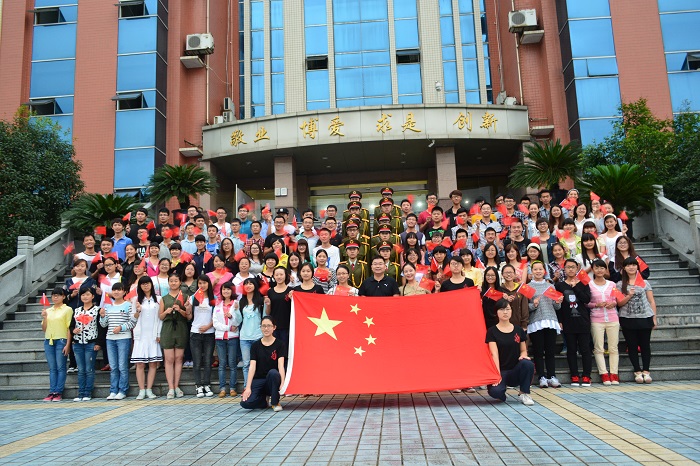 10月1日清晨,为庆祝中华人民共和国成立65周年,我校师生在高坪校区行政楼广场举行了隆重而庄严的升国旗仪式。6点20分, 国旗仪仗队的同学们踏着威武雄壮的步伐在校园中行进,把五星红旗护送到广场。7点整,伴随着全体师生的注目礼和齐声合唱《义勇军进行曲》,五星红旗迎着朝阳冉冉升起。最后,同学们在国旗下的庄严宣誓,在五星红旗下的合影留下了他们手握国旗的骄傲和自豪。