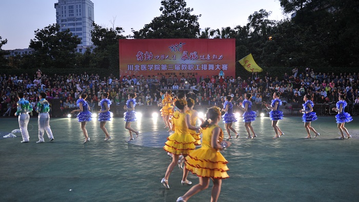 5月16日晚,顺庆校区灯光篮球场上灯光闪烁,音乐嘹亮,由我校党委主办、工会承办的第三届教职工排舞大赛在这里如火如荼的举行。学校党委书记李成军、党委副书记杜勇,副院长李健、雷军,组织部、宣传部、工会、学生处、团委、离退办等相关部门负责人以及各院系师生近2000人观看了比赛。