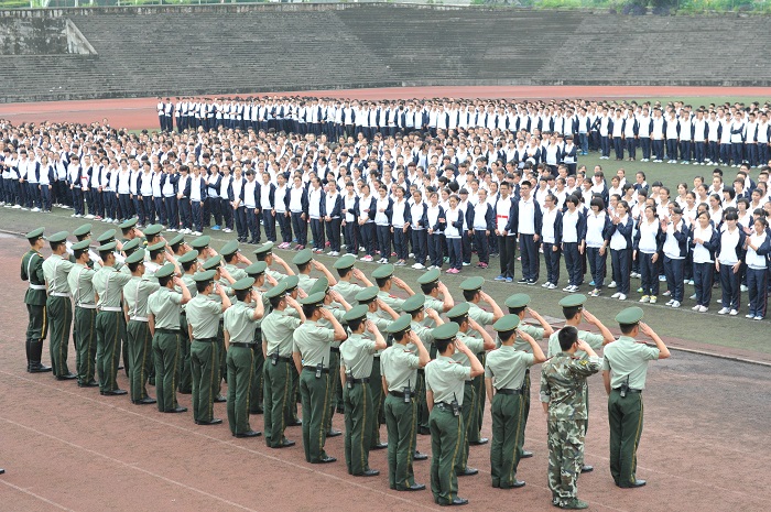 2014级学生军训总结大会暨开学典礼在校歌声中圆满结束。