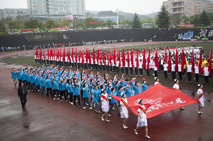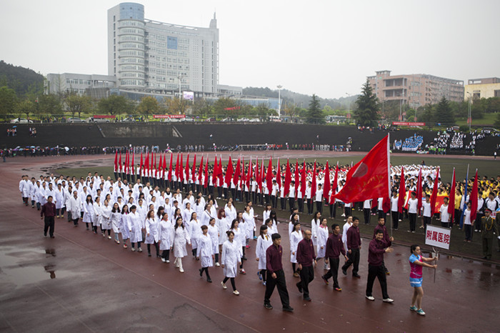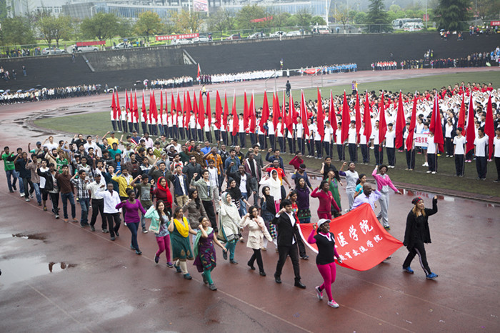 时在中春,阳和方起。 4月11日上午9点,我校第十二届运动会暨第四届“教学杯”男子篮球赛在高坪校区足球场拉开序幕。各院系、教职工分会、留学生以及我校附属医院及友好医院组成的三十余支方队,在运动会会旗的带领下,走向主席台并接受检阅,每支方队各具特色,激情昂扬,彰显了本届运动会的别样精彩。