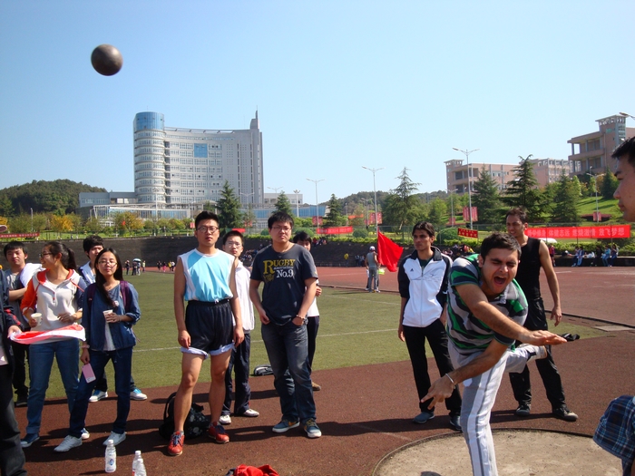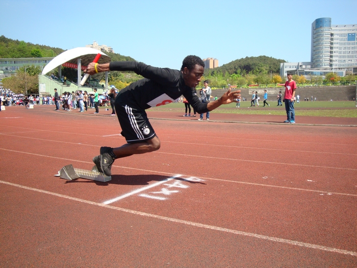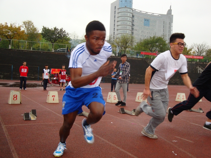 4月11日,我校第十二届运动会在新区足球场隆重开幕。开幕式上,我校留学生以饱满的热情、矫健的身姿昂首阔步走在运动场上。“敬业、博爱、求是、创新”不仅仅是他们的口号,更是他们的追求。他们的优良表现不时赢得运动场上师生们的阵阵喝彩。在接下来两天的比赛中,他们用自己的汗水与拼搏取得了优良的成绩。来自加纳的Eugene Kwaku Ofe同学一举夺得跳远第一名和三级跳第二名两项大奖。同样来自加纳的Desmond Agbenyo Adzeoda同学和来自巴基斯坦的Muhammad Hashim同学均取得200和400米短跑第四名的好成绩。在4×100和4×400接力赛中,我校留学生分别取得第三名和第四名的好成绩。本着“友谊第一”的比赛宗旨,来自不同国家的留学生们也因此更加团结,心手相连。