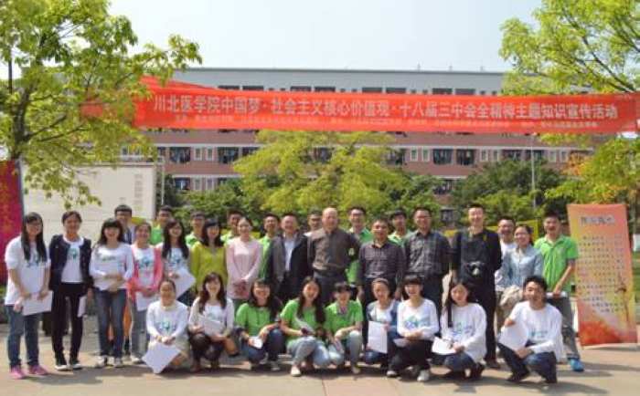 为宣传党的最新理论成果,提高我校学生的政治素养,4月22日,由南充市社科联、四川省川北历史文化科普及基地主办,我校党委宣传部、思想政治理论课教研部和南充市社会科学普及志愿者协会承办,我校青年马克思主义学会协办的川北医学院“中国梦”、“社会主义核心价值观”、“十八届三中全会精神”主题知识宣传活动在高坪校区瑞园广场成功举行。学校党办院办、宣传部、人文社科学院、思想政治理论课教研部等领导应邀参加了本次活动。