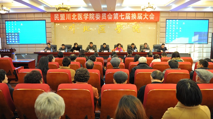 12月16日下午,民盟川北医学院委员会第七届换届大会在我校顺庆校区科技楼九楼会议室成功召开。政协南充市委员会副主席、民盟南充市委员会主委朱家媛,中共南充市委统战部纪检员、机关党委副书记董林,民盟南充市委副主委蔡昌平、郭玉梅,秘书长王线,我校党委书记李成军、统战部部长杨竹秋以及学校各民主党派代表出席会议。