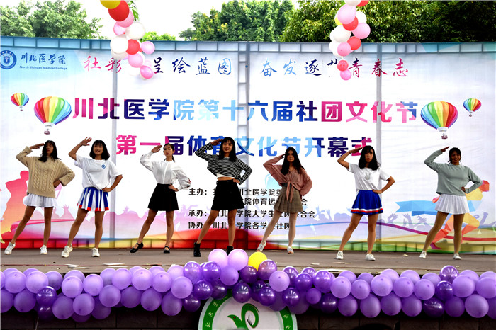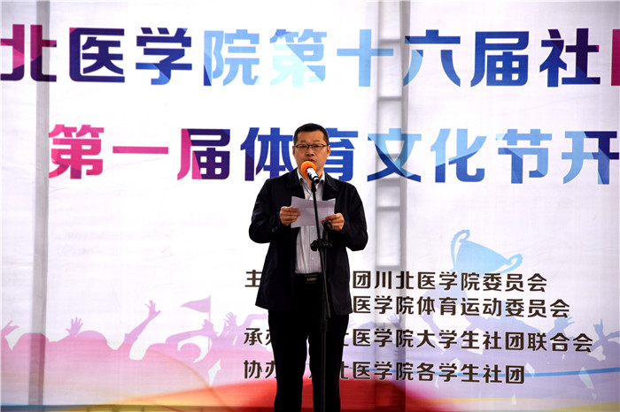 为进一步繁荣校园文化,推动我校学生社团健康发展,进一步丰富学生课余生活,加强校园文化建设。10月14日,由共青团川北医学院委员会、川北医学院体育运动委员会主办,大学生社团联合会承办,全校各学生社团协办的第十六届社团文化节暨第一届体育文化节在高坪校区隆重举行。学校党委副书记黄平,学校副院长、体育运动委员会主任罗加福,喻家少林六合门第八代掌门人、南充市非物质文化遗产传承人刘朝贵,学校体育部部长吕志远,校团委书记王帅亭子,西华师范大学、西南石油大学(南充)、南充职业技术学院学生代表,学生社团会员代表共1600余人参加此次活动。