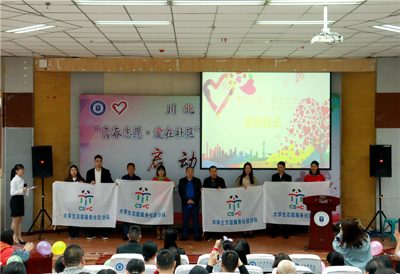 10月18日下午,由共青团南充市委员会主办,我校团委、顺庆区团委、高坪区团委共同承办的“青春志愿·爱在社区”大学生志愿服务社区行动启动仪式在高坪校区图书信息大楼407教室举行。共青团南充市委副书记黄映、顺庆区团委书记周剑兰、高坪区团委书记张菁山、我校团委书记王帅亭子、顺庆区学院街社区、高坪区元宝山社区等11个社区负责人以及我校各院系团总支负责人、各院系志愿者代表共400余人参加活动。