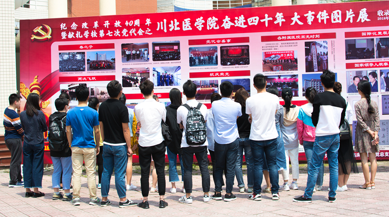 为纪念改革开放40周年,献礼学校第七次党代会,4月19日起,党委宣传部、临床医学系党总支在顺庆校区举办川北医学院“奋进四十年”大事件图片展。图片展选取了学校1978年至今有代表意义的部分大事件图片,以展板的方式集中展示。