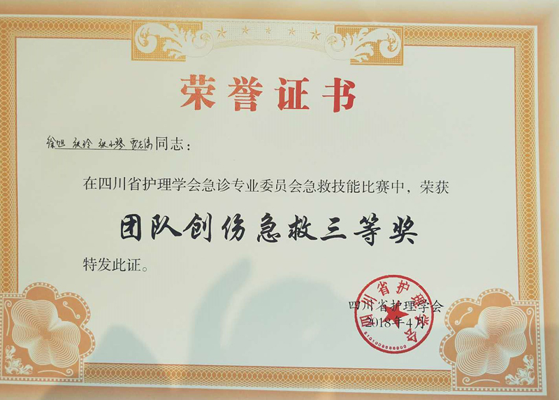 我校附属医院派出的参赛队经过前期精心准备,由急诊医学科副护士长颜源均带队,9名急诊护士参加了此次竞赛。经过现场激烈角逐,徐旭、张玲、张小琴、贾志伟荣获团队创伤急救三等奖,我校附属医院急诊护理团队荣获综合组织优胜奖。王浩、王晨苏、杨云川、唐诗分别荣获简易呼吸器使用技术、动脉血气采集技术、单人徒手心肺复苏技术、留置针静脉输液技术4个单项比赛优胜奖。