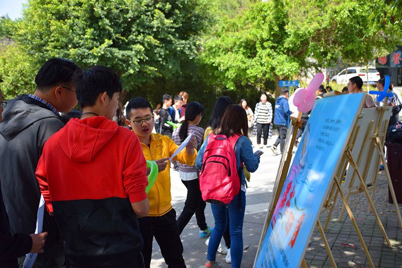宣传活动现场,学校图书馆学生管理委员会和书友协会开展了横幅签名、集赞抽奖和赠送校园明信片等宣传活动,热情地向同学们解说各项活动内容和报名方式,在场同学纷纷与身着熊本熊的工作人员拍照留影,表现出对此次读书文化节活动的参与兴趣。此次读书文化节活动通过线上报名,工作人员通过线上线下宣传,极大的提高了同学的参与力度和参与积极性。