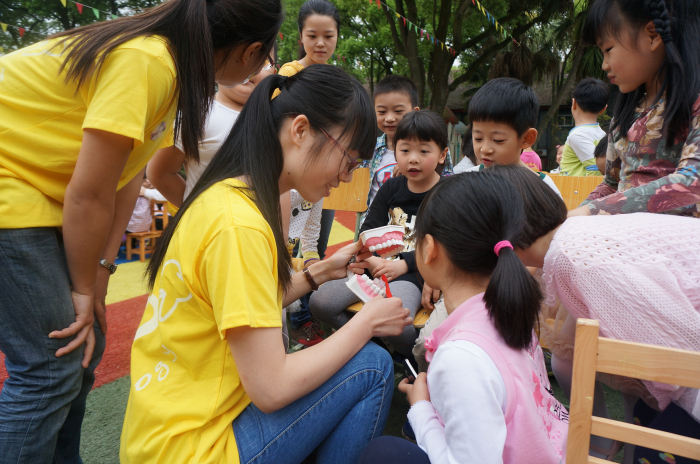 为向广大人民群众宣传口腔保健知识,提高群众口腔保健意识,4月15日,我校口腔医学系志愿者赴南充市顺庆区金红国际城北幼稚园开展了题为“儿童健康,从齿开始”的护齿万人行活动。志愿者为该园11个班的280余名小朋友开展志愿服务。
