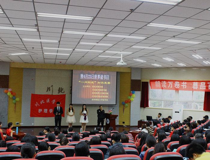 为响应十八大关于“全民阅读”的号召,拓宽大学生人文知识,培养学生读书求真知的良好习惯,4月20日晚,由南充市图书馆主办,我校护理学院,西华师范大学读书社共同承办的“智慧天使 一问到底”知识竞赛活动在高坪校区407教室成功举行。南充市图书馆副馆长刘军,我校图书馆副馆长黄伦东等领导出席了本次活动并担任评委。