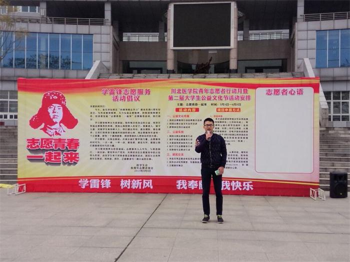 3月5日为毛泽东同志号召“向雷锋同志学习”的纪念日。青年志愿者协会副会长彭磊、何桂琴先后发言,他们倡议:从身边的小事做起,用热情点亮身边的公益,用责任担起志愿服务的脊梁,希望大家可以用自己的一举一动关怀身边每个需要帮助的人,在实践中践行雷锋精神。最后,学生代表梁蕊领誓,坚毅的誓词回响在校园中,成为一名光荣的青年志愿者,团结互助、平等友爱、共同进步,为美好社会的建设贡献自己的青春力量。