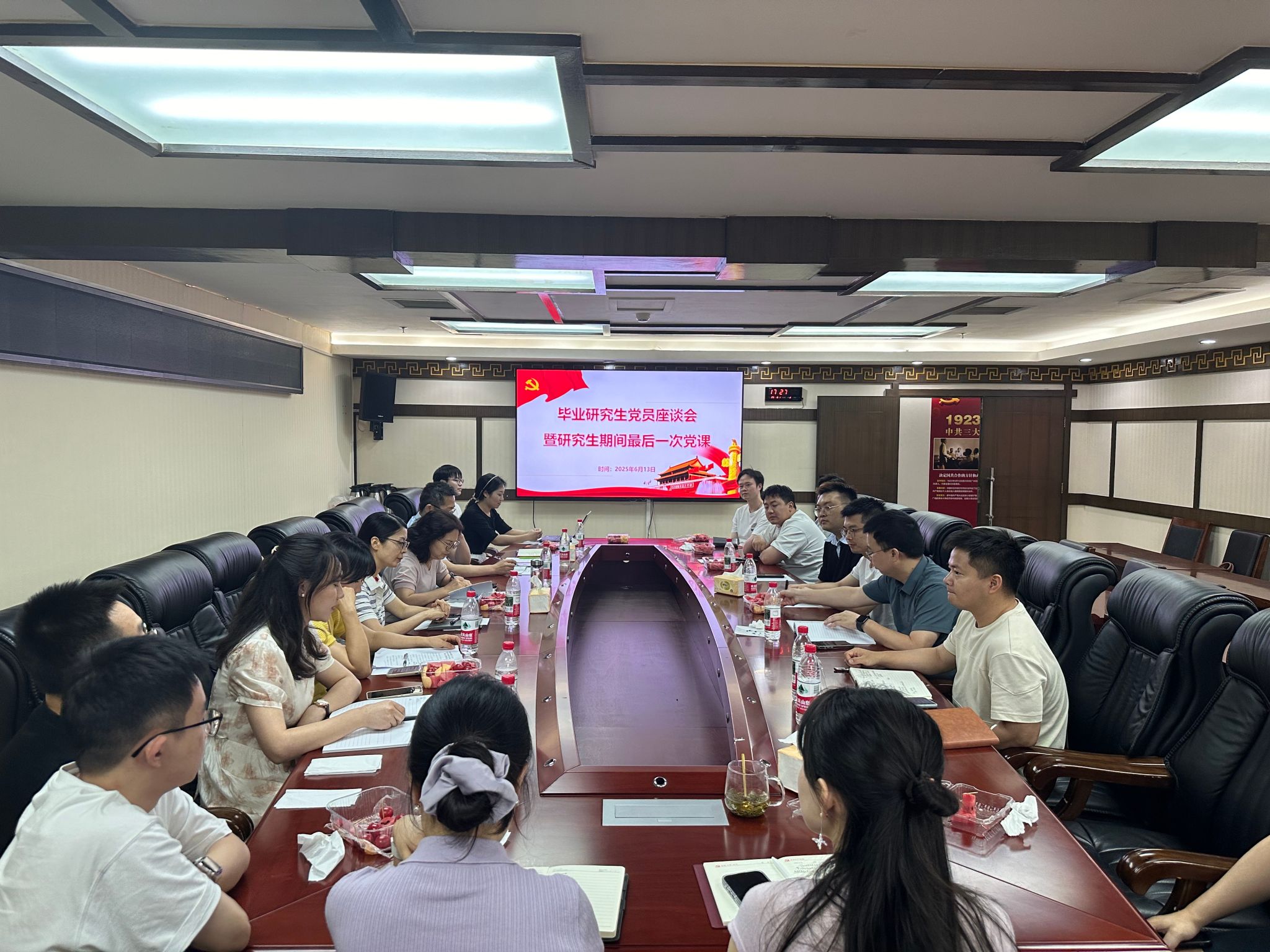 2025年6月13日,川北医学院(顺庆校区)科技楼4楼第二会议室,机关党委第八党支部、外科学研究生第三党支部、研究生教工党支部联合举办了毕业研究生党员座谈会暨研究生期间最后一次党课、主题党日活动,活动取得圆满成功。会议由机关党委第八党支部书记邢艳处长主持。活动旨在为毕业研究生党员搭建交流平台,分享学习经验与感悟,并为他们送上毕业祝福与期望。