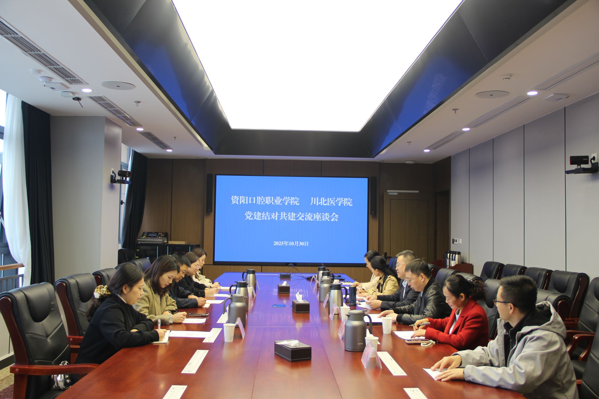 两校党委组织部、口腔医学院、护理学院等负责同志参加座谈交流会。