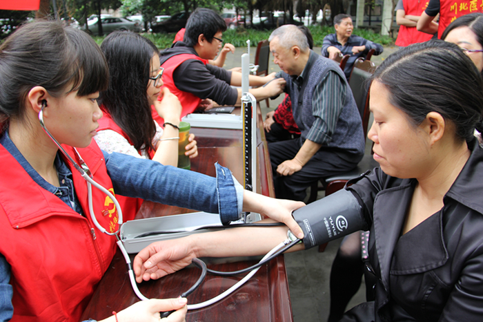 活动现场,学生党员们热情高涨,积极耐心地为前来咨询的群众提供医疗卫生服务。一些学生党员为群众分发呼吸系统疾病、季节性流感知识宣传单;一些学生党员利用呼吸系统图谱,形象地为现场群众讲解肺部疾病的起因、经过以及结果;一些志愿者为现场群众诊断病情、测量血压、回答疾病预防知识等。面对现场群众的咨询,学生党员们都在自己能力范围之内为其耐心、详细地讲解,赢得了群众们的一致好评。
