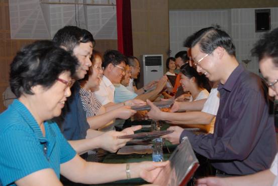 大会在激昂的国际歌声落下帷幕,会后,全体受表彰的先进集体代表、先进个人和学院领导一起在实验教学大楼前合影留念。